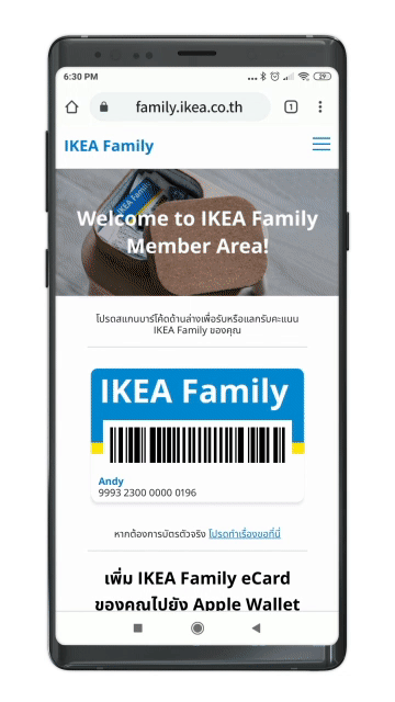 - เยี่ยม! IKEA Family eCard ของคุณพร้อมใช้งานแล้ว